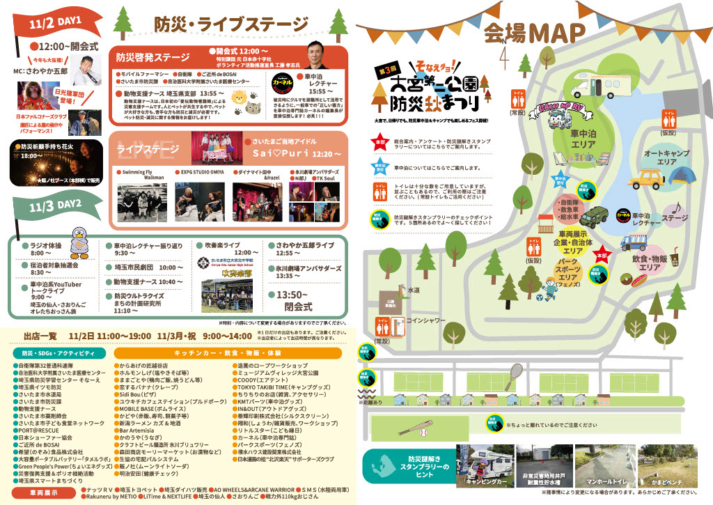 主催:大宮公園防災車中泊&キャンプFes.実行委員会/大宮第二公園及び第三公園マネジメントネットワーク